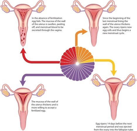 Every month, in the years between puberty (typically age 11 to 14) and menopause (typically about age 51), your body readies itself for pregnancy. The lining of your uterus thickens and an egg grows and is released from one of your ovaries.